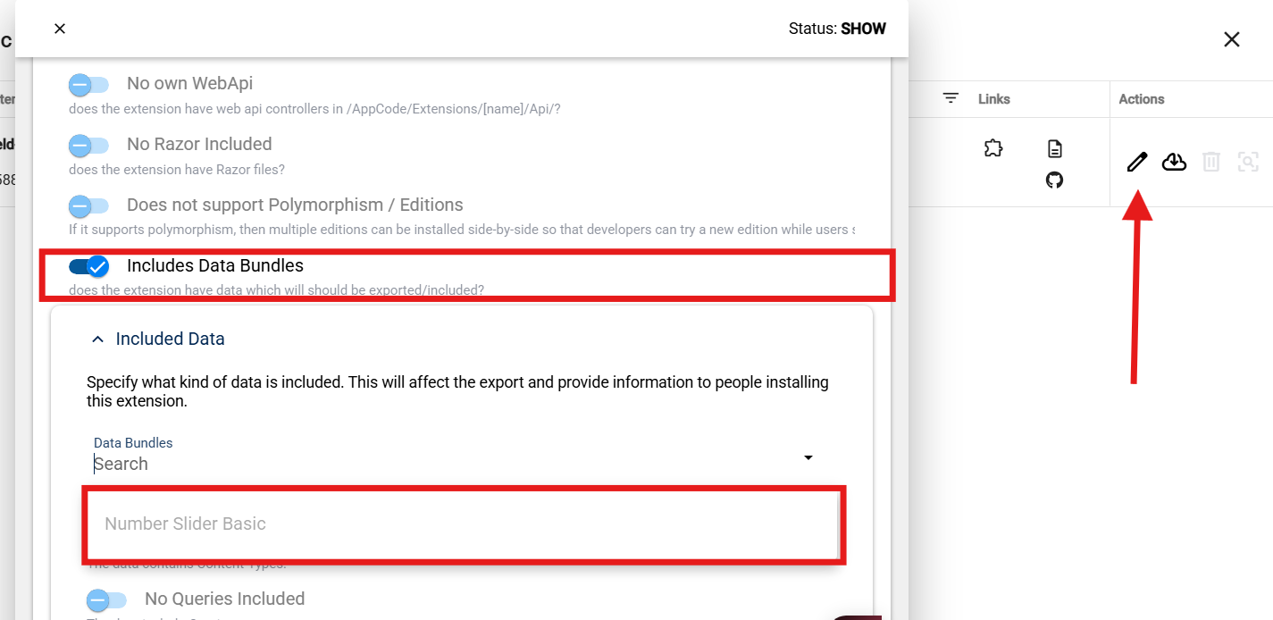 To change the settings of your input field extension, click the pen icon next to the extension entry.