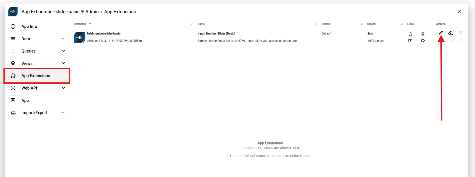 Open the extension configuration of the extension